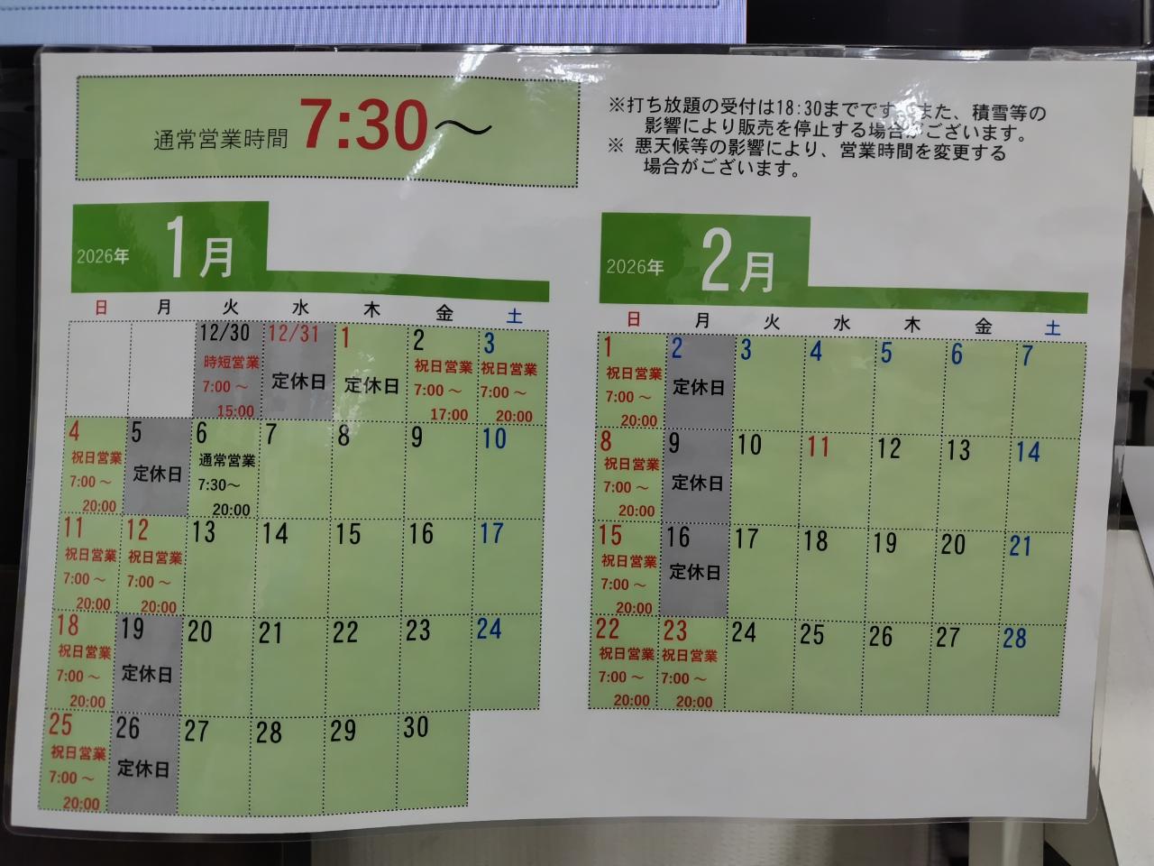 その他、1~2月の営業時間は下記よりご確認ください。